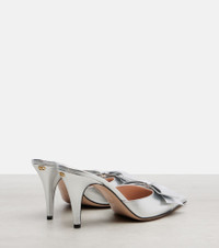 Step into elegance with these mules from Valentino Garavani. The pair is crafted from silver-toned metallic leather and features sleek, pointed-toe silhouettes. Product Details - Upper: leather - Lining: leather - Sole: leather insole and sole - Color: silver - Toe shape: pointed toe - Made in Italy - Includes: dust bag, shoe box - Designer color name: Silver - Item number: P01130224 Size & Fit - True to size - European sizes - 8,5cm-3.5" heel