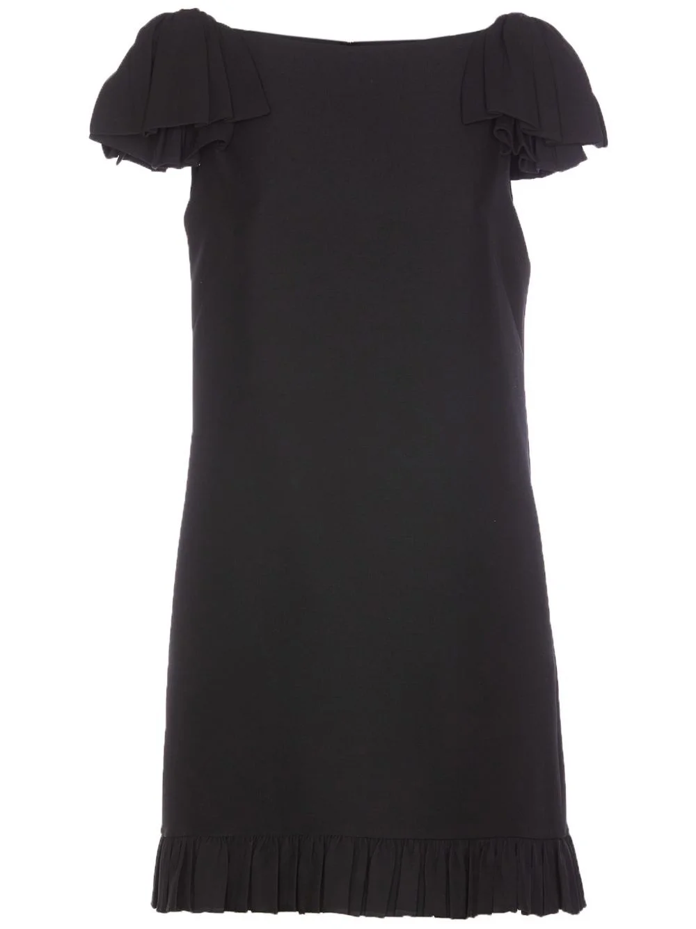 crepe dress Highlights - Black - Concealed rear zip fastening - Ruffled detailing - Boat neck - Short sleeves Made in Italy Composition Outer: Wool 65%, Silk 35%