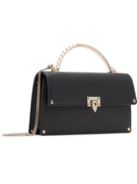 Grained calfskin shoulder bag. · Signature pyramid studs throughout · Metal carry handle · Detachable curb chain shoulder strap · Logo stamp at back face · Tab-slot flap closure · Three card slots at interior · Nappa leather lining · H4.25" x W7.5" x D1.5" Supplier color: Nero Calfskin. Made in Italy 252807F048039