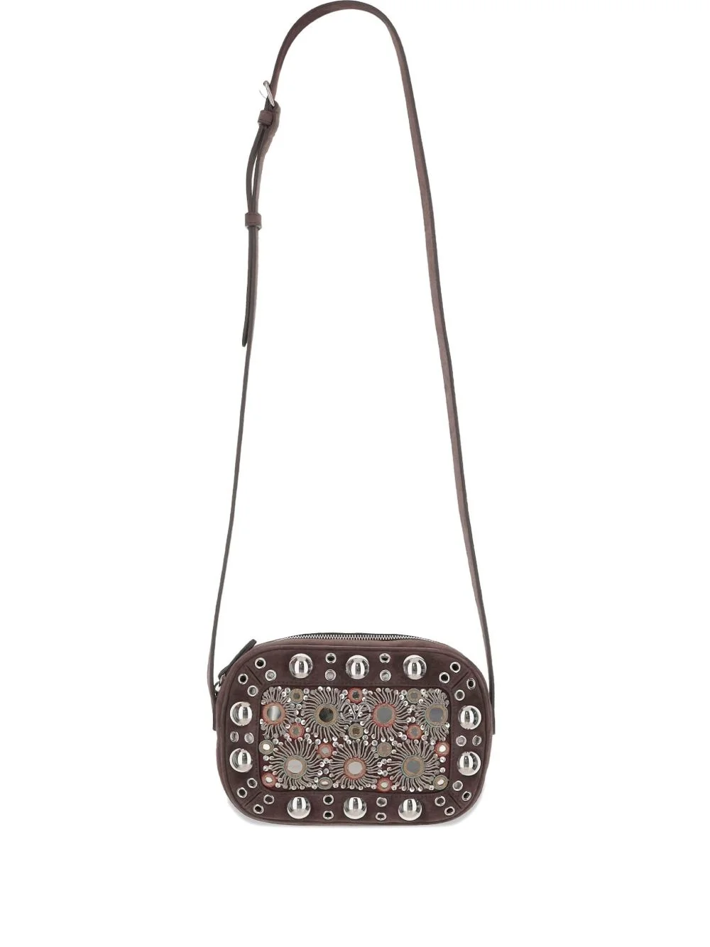 Nellcote mirror-embellished stud-detailed shoulder bag Highlights - Brown - Top zip fastening - Adjustable shoulder strap - Stud embellishment Made in Italy Composition Outer: Suede 100% SIZE & FIT Measurement DEPTH 2.36 in(6 cm) HEIGHT 6.29 in(16 cm) WIDTH 9.05 in(23 cm)