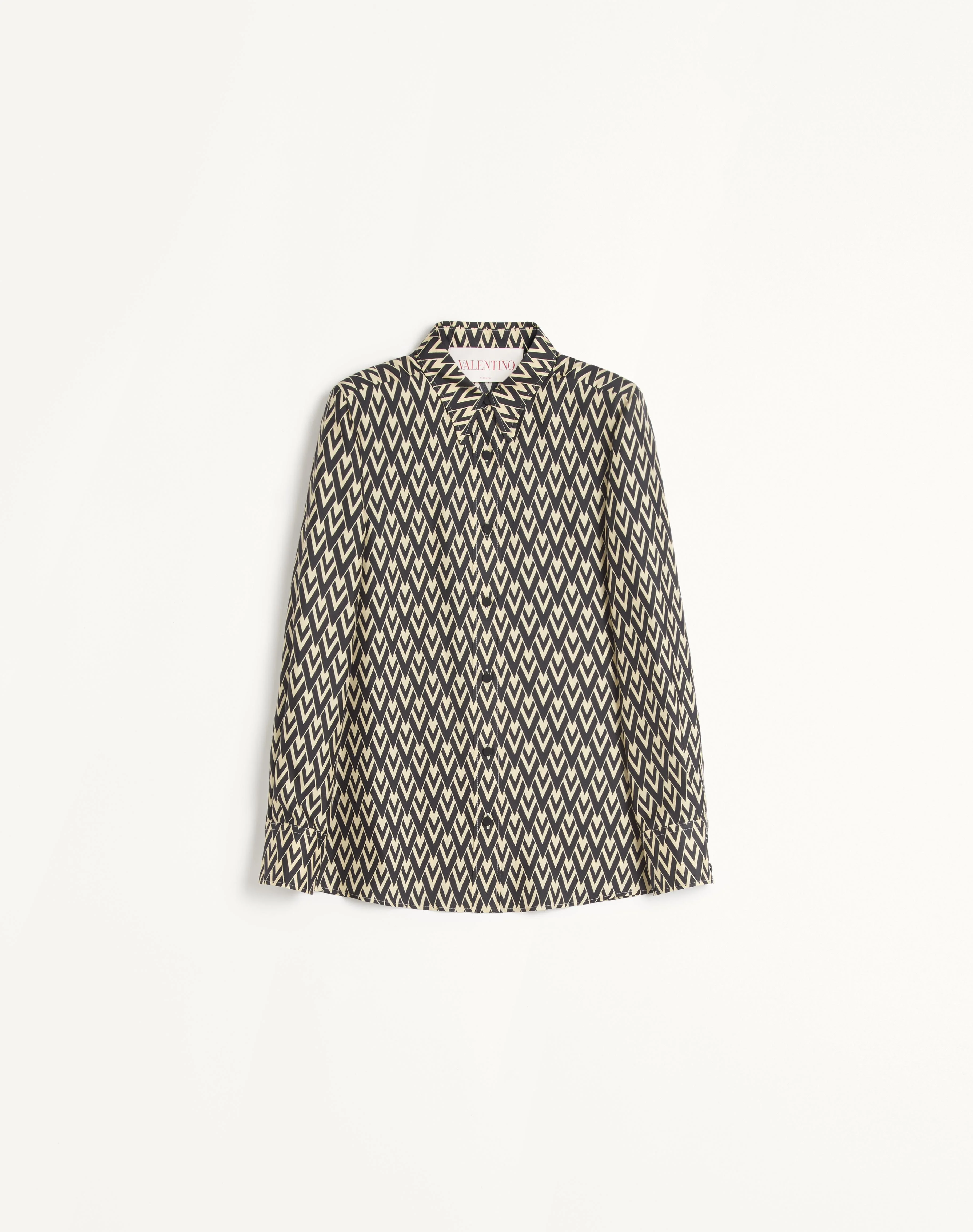 Long-Sleeved Shirt in Twill Toute la V - Toute la V print - Front closure with VLogo buttons - Twill Toute La V (100% Silk) - Unlined - Length: 66 cm / 26.0 in. from the shoulders in an Italian size 40 - Sleeve length: 81 cm / 31.9 in. from the center back in an Italian size 40 - The model is 176 cm / 5'9" tall and wears an Italian size 40 - Made in Italy The look of the model is completed by a Valentino Garavani Quiltie 67 Bag and Valentino Garavani Pattie Shoes. Product code: 6B3AB78390R_R6E