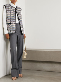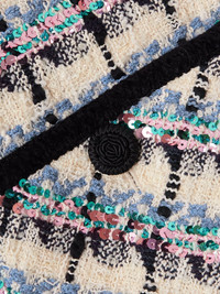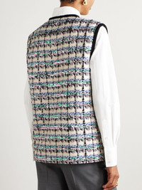 Valentino Garavani's cozy gilet is made from tweed blended with touches of cotton, wool and mohair. It's designed for a slightly loose fit and embellished with light-catching sequins that add glamour to the inherently sophisticated design. The contrasting buttons are braided to resemble rosettes - a testament to the brand's attention to detail. Size & Fit - Fits true to size, take your normal size - Intended for a slightly loose fit - Mid-weight, non-stretchy fabric - Model is 180cm/ 5'11" and is wearing an IT 40 Model measurements: - Bust: 86cm/ 34" - Waist: 65cm/ 25.5" - Hip: 90cm/ 35.5" Details & Care - Cream, black and blue tweed - Button fastenings through front - 38% cotton, 28% wool, 14% viscose, 8% polyamide, 8% polyester, 2% acrylic, 2% mohair; lining: 100% viscose - Dry clean