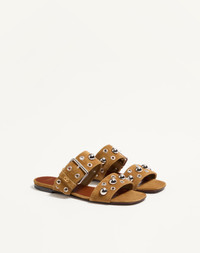 Valentino Garavani Nellcote Slide Sandal in split leather - Palladium-finish ball studs and eyelets - Adjustable buckle strap - VLogo Signature detail with antique brass-effect finish - Heel height: 5mm/0.25 in. - Made in Italy Product code: 7W2S0MM4YTB_RDX