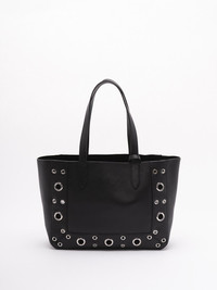 Composition: Calf Leather Made In: Italy|IT Valentino Garavani Nellcote shopping bag in grainy calfskin and trim decorated with ball studs and rivets. The bag can be comfortably worn on the shoulder or by hand thanks to the handles. Palladium-finish hardware, Small metallic detail with VLogo Signat Size: (width 42-32 cm x height 10 cm x depth 22 cm) PRODUCT INFO: Product code 7W2B0R88MJL 0NO NERO 100%Bos Taurus