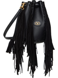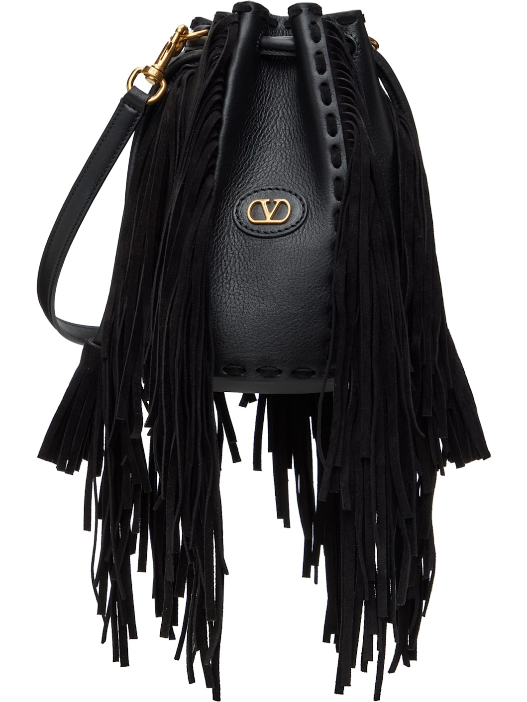 Grained calfskin shoulder bag in black. - Fringed suede trim throughout - Adjustable and detachable crossbody strap - Logo hardware at face - Drawstring closure - Suede lining - H9 x W6 x D6 Supplier color: Nero