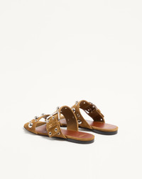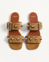 Valentino Garavani Nellcote Slide Sandal in split leather - Palladium-finish ball studs and eyelets - Adjustable buckle strap - VLogo Signature detail with antique brass-effect finish - Heel height: 5mm/0.25 in. - Made in Italy Product code: 7W2S0MM4YTB_RDX