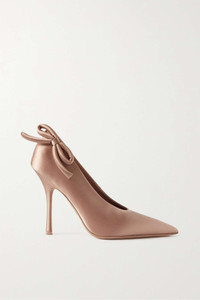 EDITORS'NOTES The tonal bow on Valentino Garavani's 'Nite-Out' pumps appears on a few different pairs this season - it makes every style instantly more feminine. They're made from satin which gives a soft glow and cutout at the heels, so they are interesting to look at from every angle. SIZE & FIT - Fits large to size, take a half size smaller than normal - Italian sizing DETAILS & CARE - Heel measures approximately 110mm/ 4.5 inches - Beige satin - Slip on - Designer color: Rose Cannelle Large to size. See Size & Fit notes.