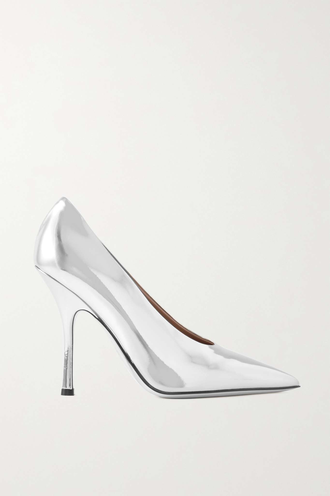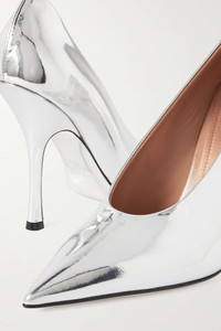 EDITORS'NOTES The sharp profile of Valentino Garavani's 'Nite-Out' pumps is perfect for occasions when you want to make a confident entrance. They've been crafted in Italy from silver mirrored-leather and set on confidence-boosting stilettos. Make sure the rest of your outfit is just as fabulous. SIZE & FIT - Fits true to size, take your normal size - Italian sizing DETAILS & CARE - Heel measures approximately 110mm/ 4.5 inches - Silver mirrored-leather (Calf) - Slip on