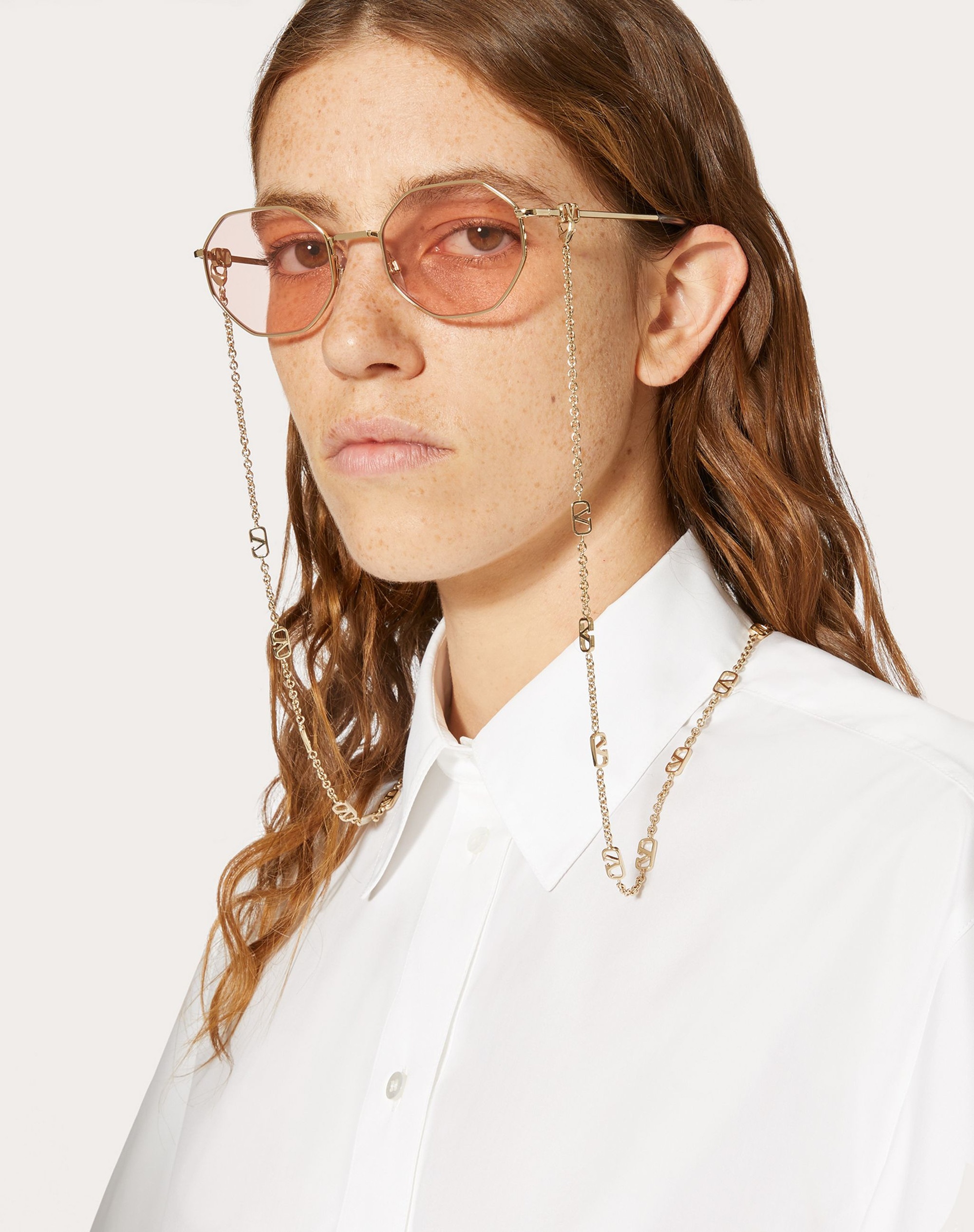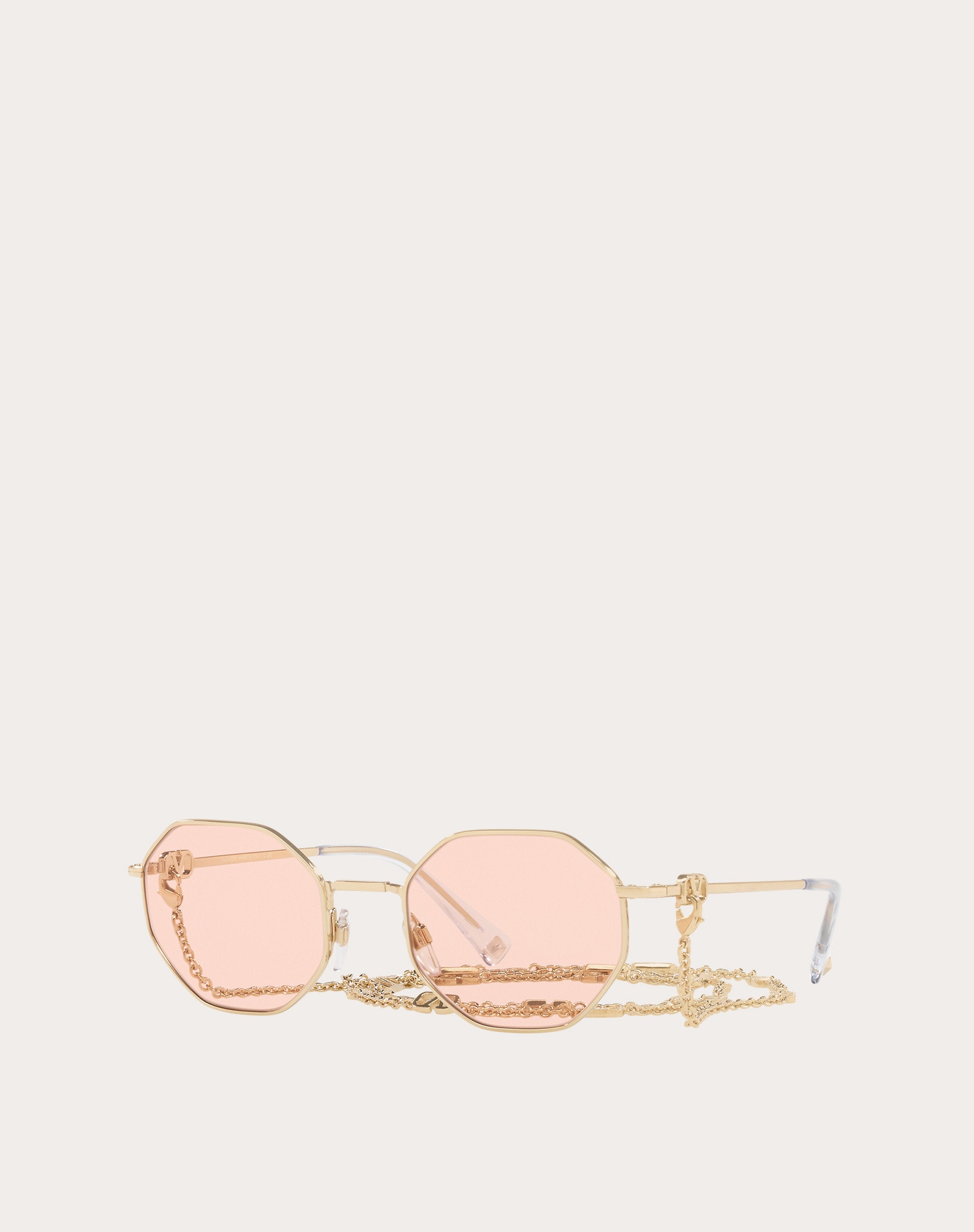 Ocatagonal-shaped metal glasses with VLogo Signature on temples - Detachable metal VLogo Signature chain - Prescription friendly - 100% UV protection - Made in Italy Product Code 0VA2040_HV4