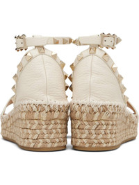 Grained leather platform sandals. · Open toe · Pyramid studs at heel collar and pin-buckle ankle strap · Buffed leather lining · Braided raffia platform midsole · Rubber sole · Platform: H2.25" Supplier color: Light ivory/Natural Upper: leather. Sole: rubber. Made in Italy 252807F124016