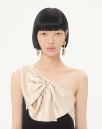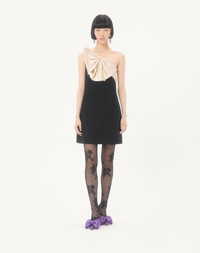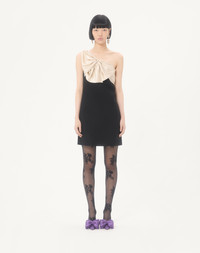 One-shoulder dress in Crepe Couture with Crepe Satin sash and bow - Side zip closure with hook-and-eye - Crepe Couture (65% Virgin Wool, 35% Silk) - Habotai lining (100% Silk) - Length: 87 cm / 34.3 in. from the shoulders in an Italian size 40 - The model is 176 cm / 5'9" tall and wears an Italian size 40 - Made in Italy The look of the model is completed by Valentino Garavani Yolande Shoes. Product code: 8B3VAHX51CF_9ZM