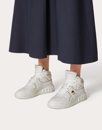 Valentino Garavani ONE STUD mid-top sneaker in calfskin. - Maxi stud detail with platinum finishing - Valentino Garavani logo printed on the tongue and heel - Rubber sole with low-relief maxi stud detail - Rubber tread with maxi stud design - Made in Italy Product Code WS0CX1RUS_L71