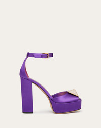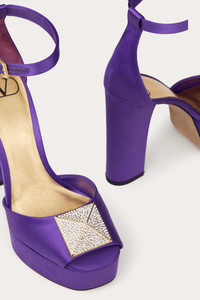 One Stud Valentino Garavani open-toe satin platform pump with maxi stud decoration. - 4x4 cm / 1.5x1.5 in. maxi stud accessory with crystal appliqué - Ankle strap with adjustable buckle fastening - Heel height: 120 mm / 4.7 in. with 30 mm / 1.2 in. platform - Made in Italy Product code: WS0EA3ULM_73E