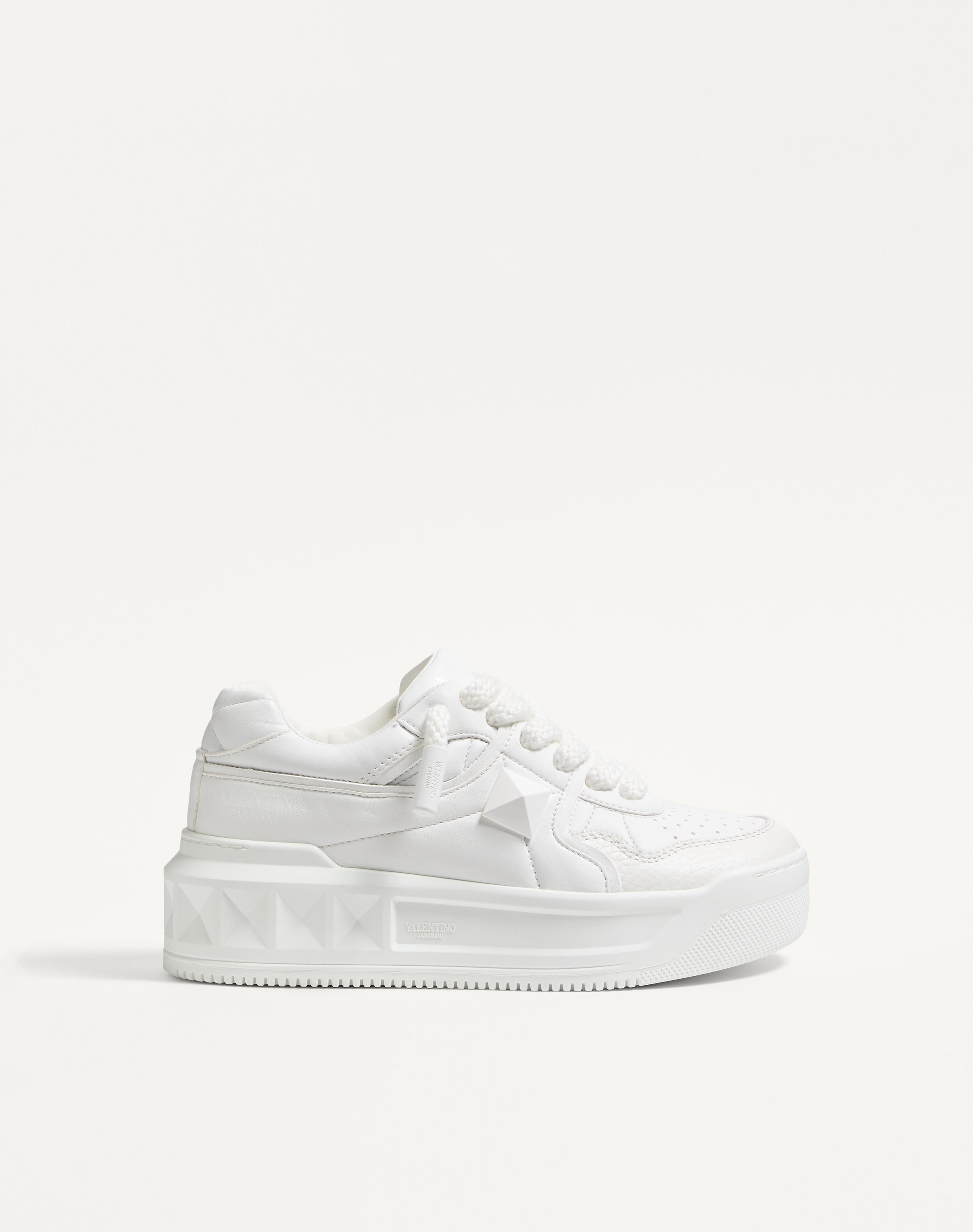 Valentino Garavani ONE STUD XL women's low-top trainer in nappa leather - Maxi stud detail 22X22mm / 0.9X0.9 in. with semi-matt finish - Valentino Garavani screen print logo on the heel and tongue - Flatform rubber sole with low-relief maxi stud detail - Rubber tread with maxi stud design - Women's trainer - Made in Italy Product code: 7W2S0FQ4XTM_0BO