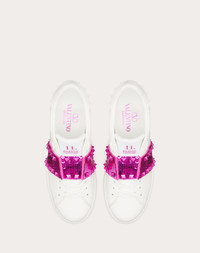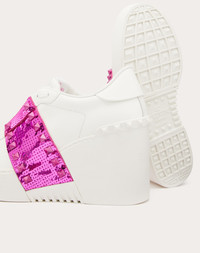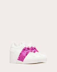Valentino Garavani Open Disco wedge sneaker in calfskin - Band with sequins and tone-on-tone finish studs - Special label with number 11 - Rubber sole with rubber stud detail on the back - Sole height: 85 mm / 3.3 in. with 30 mm / 1.2 in. platform - Made in Italy Product code: 3W2S0HP0KHQ_UWE Valentino Garavani Open Disco wedge sneaker in calfskin - Band with sequins and tone-on-tone finish studs - Special label with number 11 - Rubber sole with rubber stud detail on the back - Sole height: 85 mm / 3.3 in. with 30 mm / 1.2 in. platform - Made in Italy Product code: 3W2S0HP0KHQ_UWE