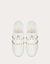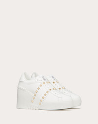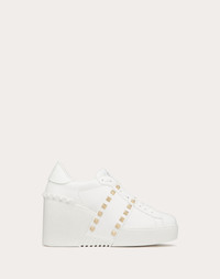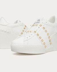 Valentino Garavani Open Disco wedge sneaker in calfskin - Band with platinum-finish studs - Special label with number 11 - Rubber sole with rubber stud detail on the back - Sole height: 85 mm / 3.3 in. with 30 mm / 1.2 in. platform - Made in Italy Product code: 5W2S0HP0BHS_0BO
