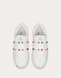 Valentino Garavani Open for a Change Sneaker in part bio-based and recycled materials - Vegan, cruelty-free footwear with no elements of animal origin - Bio-based material band with recycled nylon studs - OPEN FOR A CHANGE print on side - Partially recycled rubber sole with stud detail on back - Recycled polyester laces - Recycled cotton shoe bag - Recycled paper box - Made in Italy Product Code WS0A01PZQ_K81