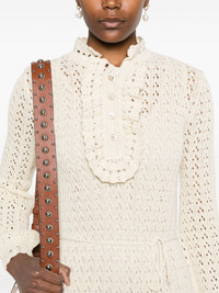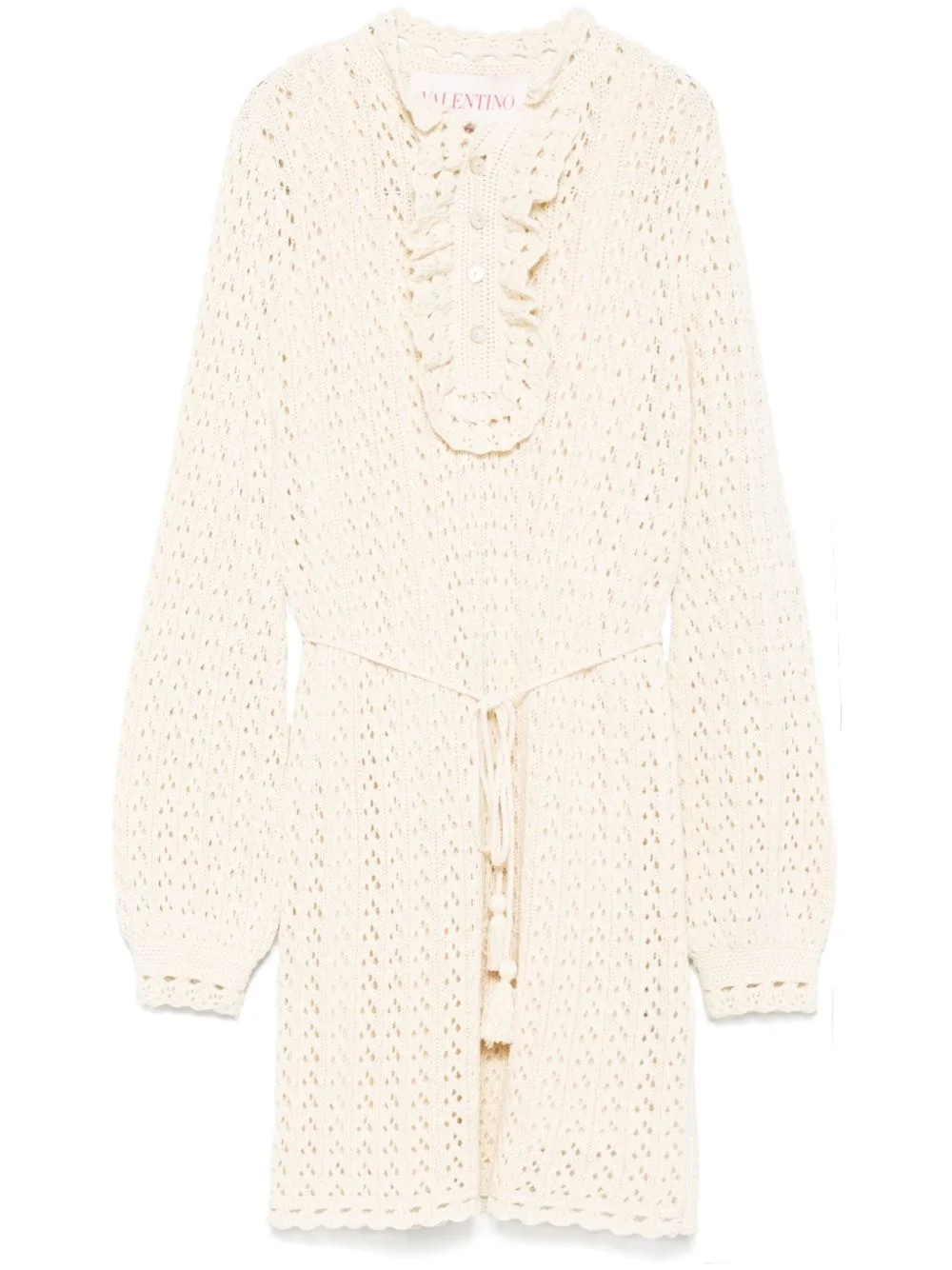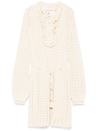 knitted mini dress Highlights - Valentino ready to wear - Light beige - Short front button fastening - Detachable waist belt - Ruffled detailing Made in Italy Composition Cotton 100% SIZE & FIT Model measurements Height 5 ft 11 in(1.8 m) Bust/Chest 31.49 in(80 cm) Hips 36.61 in(93 cm) Waist 24.4 in(62 cm) FittingInformation Designed for a relaxed fit, this piece allows for comfort and movement when worn The internal slip sits just away from the body, offering a close yet comfortable fit Made from a midweight fabric