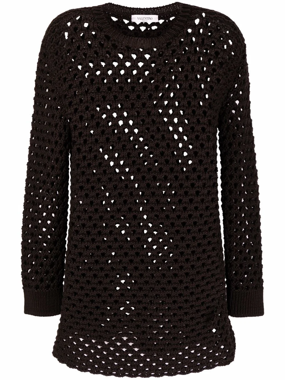 open-knit jumper It's time to mix up your jumper collection. Designed with an open-knit construction, the semi-sheer design reveals flashes of skin. Who said knitwear was boring? Highlights - Valentino ready to wear - Black - Cotton - Open knit - Crew neck - Long sleeves - Straight hem Made in Italy Composition Cotton 100% SIZE & FIT Model measurements Height 5 ft 11 in(1.8 m) Bust/Chest 31.49 in(80 cm) Hips 36.61 in(93 cm) Waist 24.4 in(62 cm) FittingInformation This piece fits true to size. We recommend you get your regular size Cut for a loose fit Made with a heavyweight fabric