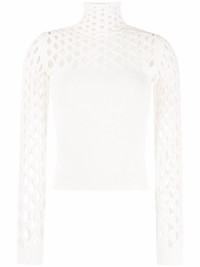 open-knit roll-neck top Valentino Garavani takes the humble knitted top and turns it on its head. Case in point, this open-knit design that reveals flashes of skin. Notice the snug roll neckline. Highlights - Valentino ready to wear - White - Open knit - Roll neck - Long sleeves Made in Italy Composition Viscose 75%, Polyester 25% SIZE & FIT Model measurements Height 5 ft 9 in(1.75 m) Bust/Chest 31.49 in(80 cm) Hips 34.64 in(88 cm) Waist 24.01 in(61 cm) FittingInformation This piece fits true to size. We recommend you get your regular size Cut for a slim fit Made with a mid-weight fabric Washing instructions Read Manufacturer Guidelines