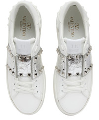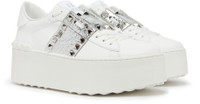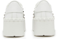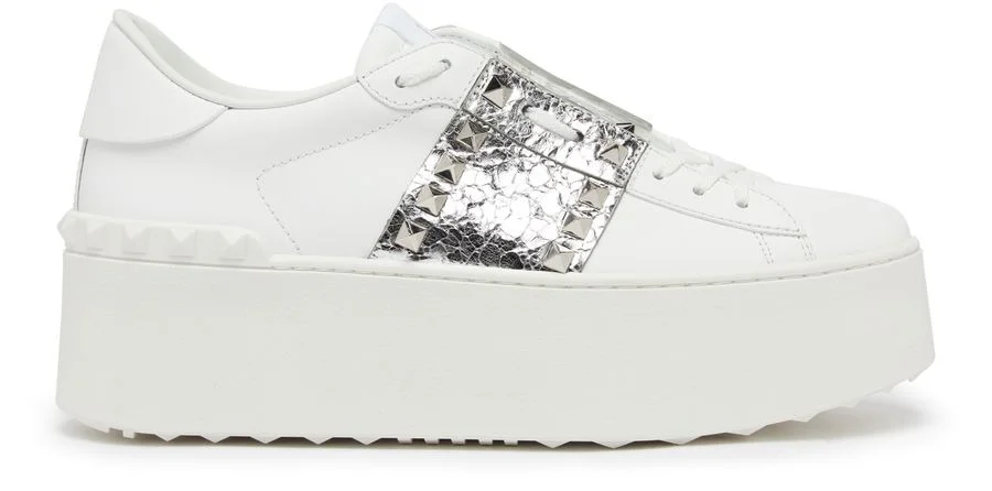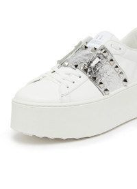 Valentino's Rockstud platform sneakers are an elegant blend of lace-up shoes and contemporary design. The sneakers feature a thick outer sole, providing durability and comfort. With a signed rubber sole and visible stitching, these sneakers showcase the brand's attention to detail and craftsmanship. DESCRIPTION - Lace-up shoes - Thick outer sole - Signed rubber sole - Visible stitching DETAILS AND CARE MATERIAL: 100% Calf leather HEEL HEIGHT: 5.7 cm / 2.2 " COLOR: bianco_silver_bianco COUNTRY OF MANUFACTURE: Italy PRODUCT CODE: VALJ3ZF8SILO2AAA00