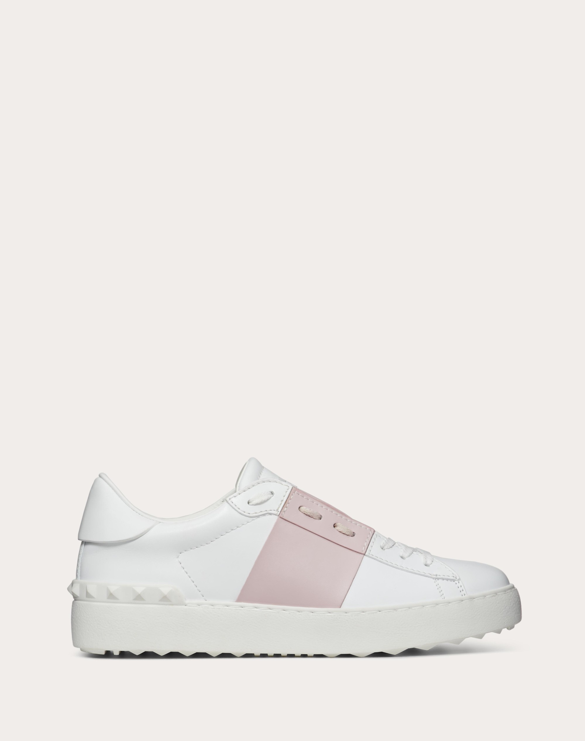 Valentino Garavani Open Sneaker in white calfskin leather. - Contrast calfskin stripe - Rubber stud detail at the back - White rubber sole - Made in Italy Product code: 3W2S0781BLU_834 Valentino Garavani Open Sneaker in white calfskin leather. - Contrast calfskin stripe - Rubber stud detail at the back - White rubber sole - Made in Italy Product code: 3W2S0781BLU_834