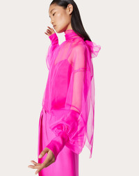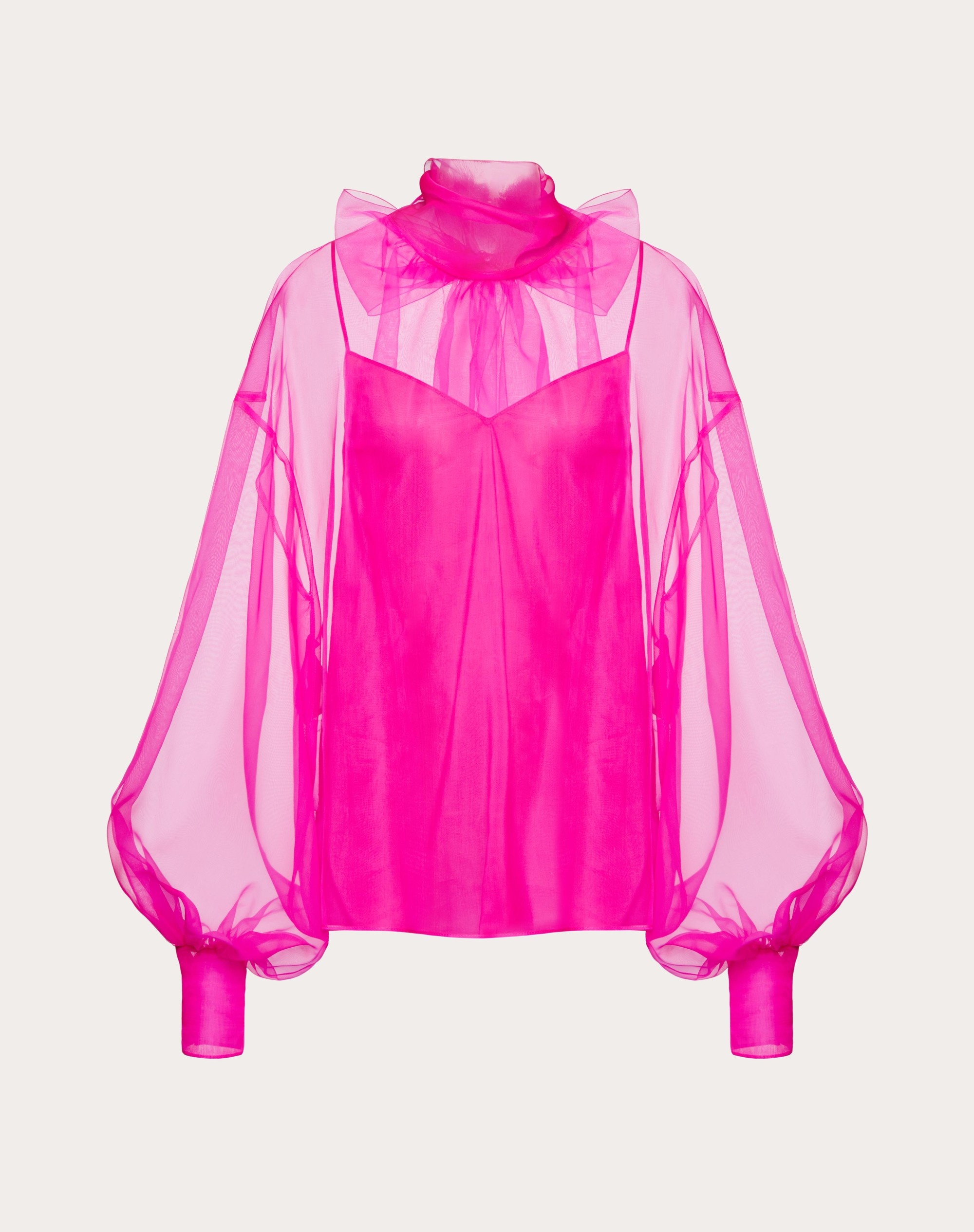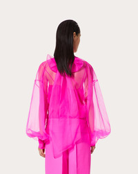 Women's organza top - Necktie detail - Rear keyhole and button closure - Organza (100% Silk) - Detachable camisole in Georgette Stretch (91% Viscose, 9% Elastane) - Length: 70 cm / 27.5 in. from the shoulders in an Italian size 40 - Sleeve length: 85 cm / 33.4 in. from the center back in an Italian size 40 - The model is 176 cm / 5'9" tall and wears an Italian size 40 - Made in Italy Product code: BAE7L01C8_UWT