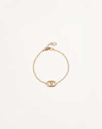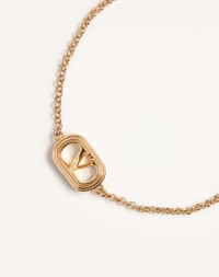 Metal and Swarovski® Pearl Ovalette Bracelet - Gold-tone finish - VLogo Signature size: 15 x 10 cm / 5.9 x 3.9 in. - Pearl diameter: 6 mm / 0.24 in. - Available in sizes S - M - Size S adjustable length from 16 to 17.4 cm / 6.3 to 6.9 in. - Size M adjustable length from 18 to 19.4 cm / 7.1 to 7.6 in. - Snap hook closure - Made in Italy Product code: 6W2J0Y76UXM_R5G