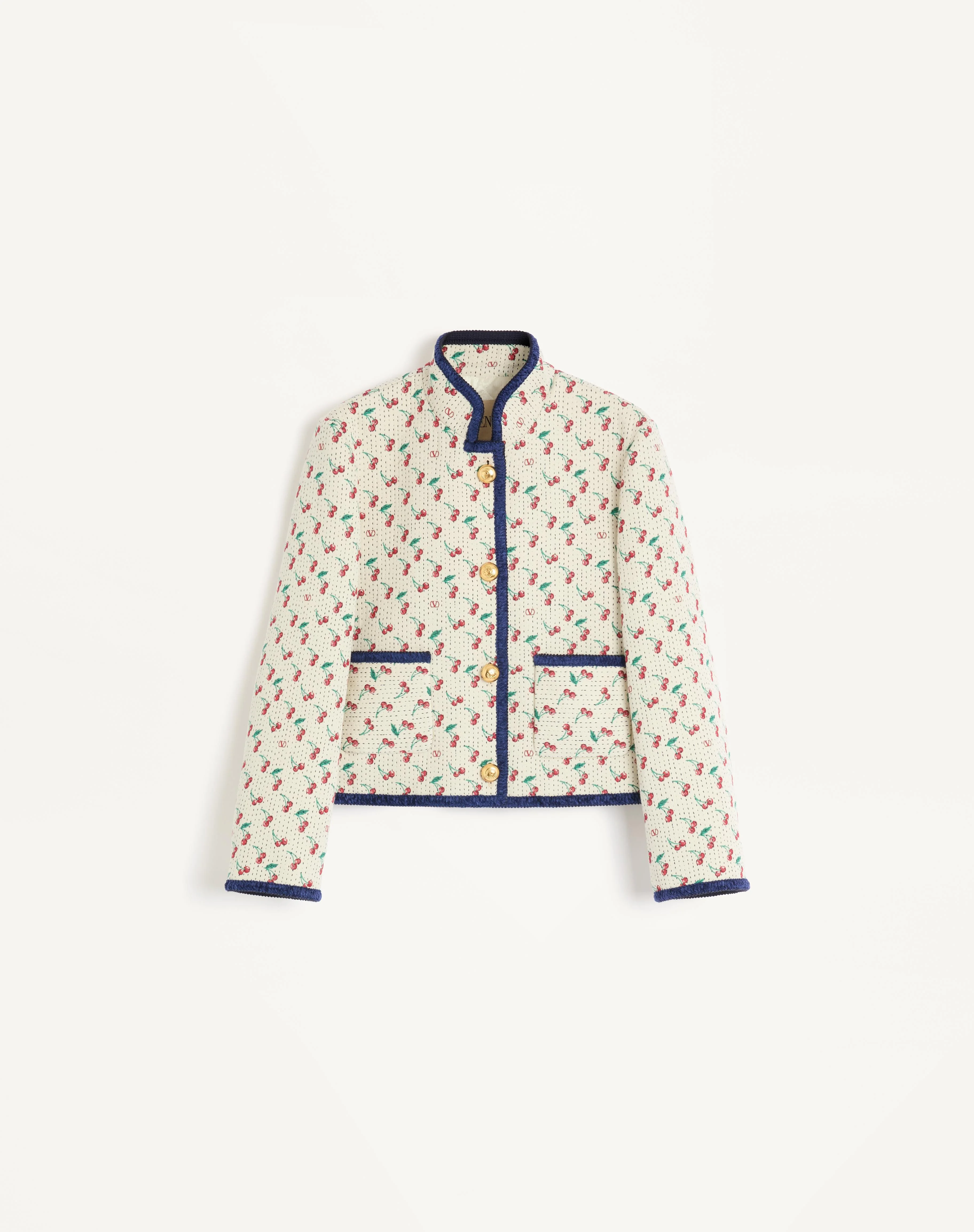 PADDED CABAN WITH CHERRYFIC PRINT JACQUARD