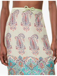 Paisley-Pattern Flared Silk Midi Skirt