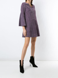 panelled flared dress This flared Valentino dress has done it. It's gotten rid of 'nothing to wear' days. Round of applause for your new favourite piece. Featuring a v-neck, a rear zip fastening, cropped sleeves, a flared style, a short length and a panelled design. Made in Italy Composition Leather 100% SIZE & FIT Model measurements Height 5 ft 10 in(1.77 m) Bust/Chest 32.28 in(82 cm) Hips 36.61 in(93 cm) Waist 25.19 in(64 cm) Measurement BUST 33.07 in(84 cm) HIPS 38.58 in(98 cm) LENGTH 33.07 in(84 cm) Shoulder Width 15.35 in(39 cm) SLEEVE LENGTH 21.65 in(55 cm) WAIST 33.07 in(84 cm)
