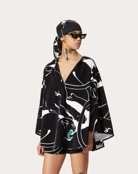 Terry Cotton Panther Cape - Caftan Neckline - Terry Cotton Panther (100% Cotton) - Unlined - Length 80 cm / 45.6 in. from the shoulders in an Italian size 40 - Sleeve length: 75 cm / 26.3 in. from the center back in an Italian size 40 - The model is 176 cm / 5'8" tall and wears an Italian size 40 - Made in Italy The look of the model is completed by a Valentino Garavani Bag and Valentino Garavani Shoes. Product code: 3B3CG3W686D_K1E