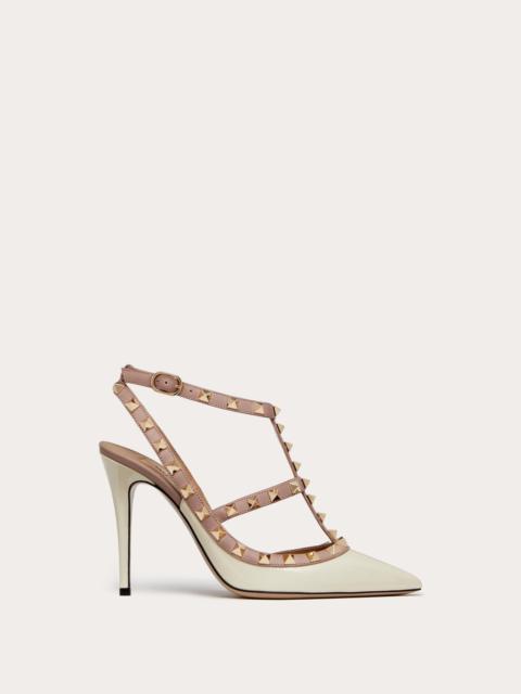Valentino Garavani Rockstud ankle strap pump in patent leather - Platinum finish studs - Contrast powder color nappa leather piping and ankle straps - Adjustable buckle closures - Heel height: 100 mm/4'' - Made in Italy Product code: 5W2S0393VNW_N91