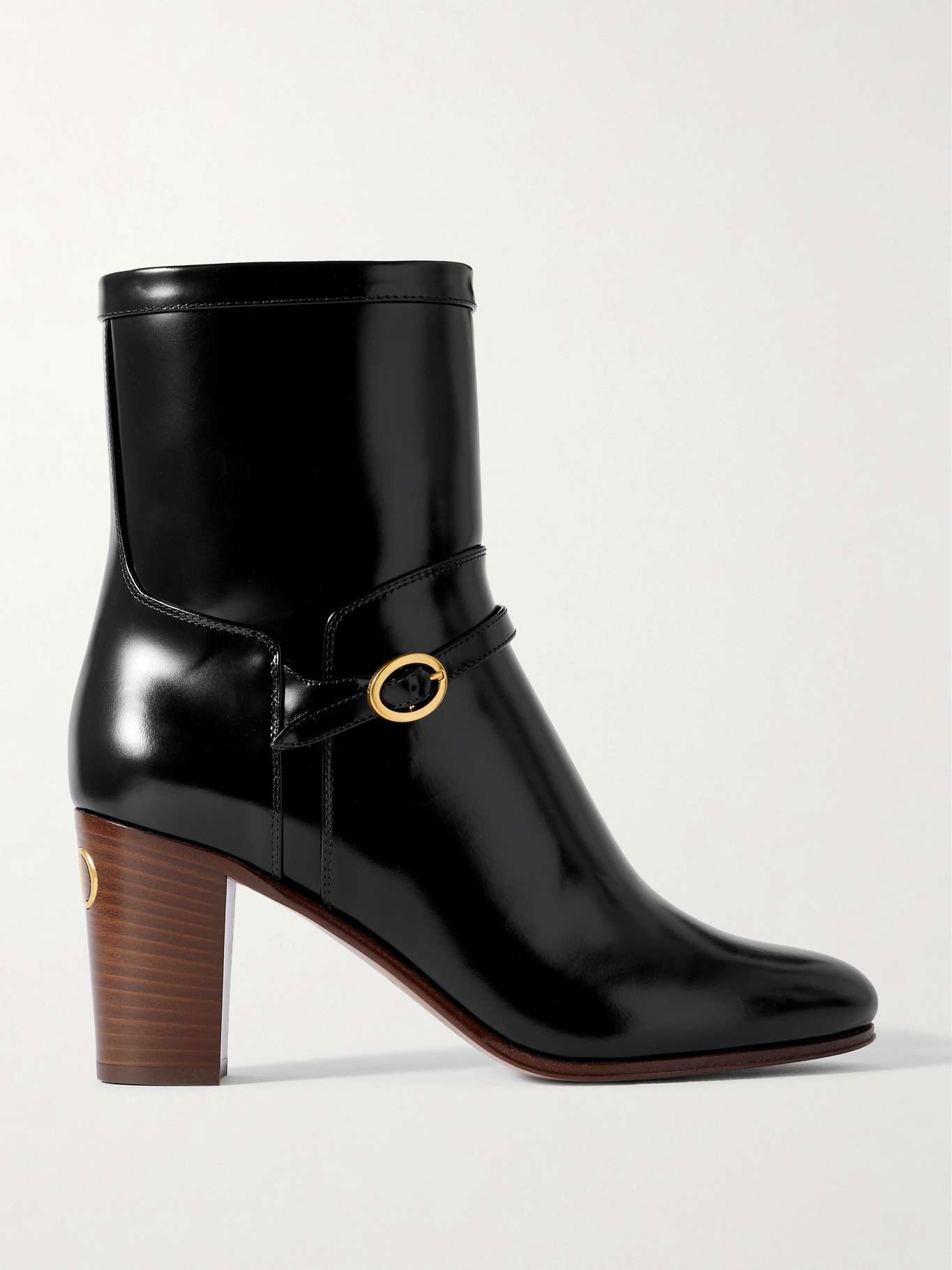 EDITORS'NOTES Valentino Garavani’s ankle boots will remain your go-to for years to come. They’re made from smooth leather with a slim buckled strap across the front and are embellished with a gold ‘VLOGO’ plaque at the block heel. Wear yours with jeans and midi dresses. SIZE & FIT - Fits true to size, take your normal size - Italian sizing DETAILS & CARE - Heel measures approximately 80mm/ 3 inches - Black leather (Calf) - Zip fastening along side