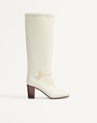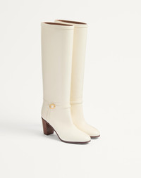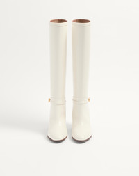 Valentino Garavani Pattie boot in calfskin leather - VLogo Signature accessory with antique-effect brass finish - Calfskin strap with buckle - Leather block heel - Heel height: 75 mm / 3 in. - Boot shaft height: 39 cm / 15.4 in.; Italian size 37 - Made in Italy Product code: 6W2S0LD6ZJM_098