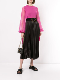 pleated leather skirt Seamlessly merging boldness with elegance, Valentino's sleek approach to even the most casual of pieces ensures that you always look stylish, as showcased by this black skirt. The traditional A-line silhouette sees luscious black leather panels for a structured yet feminine edge. Made in Italy Composition Calf Leather 100% SIZE & FIT Model measurements Height 5 ft 9 in(1.75 m) Bust/Chest 33.07 in(84 cm) Hips 35.03 in(89 cm) Waist 24.01 in(61 cm) Measurement LENGTH 33.07 in(84 cm) WAIST 25.98 in(66 cm) Washing instructions Do Not Wash/Do Not Dry Clean