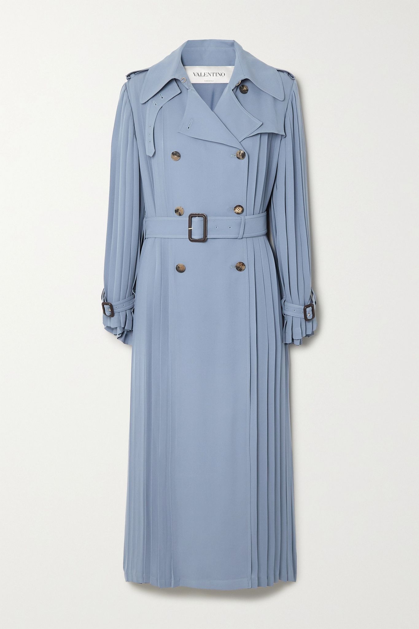 Pleated silk-crepe trench coat