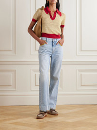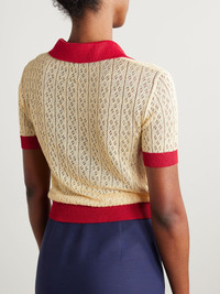 Pointelle-knit linen-blend polo shirt Ecru