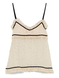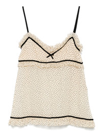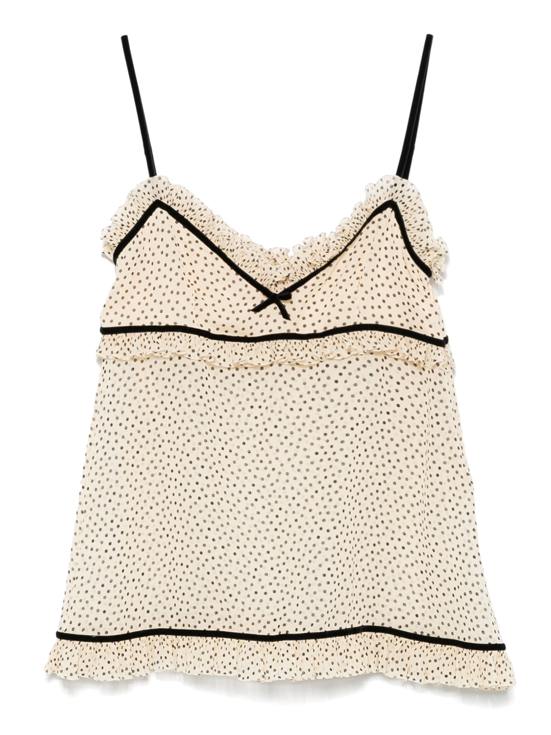 - sand beige - V-neck - spaghetti straps - ruffled trim - Made in Italy Materials & Product Care Composition: Elastane 9% Composition: Silk 100% Composition: Viscose 91% Composition: Polyamide 100%