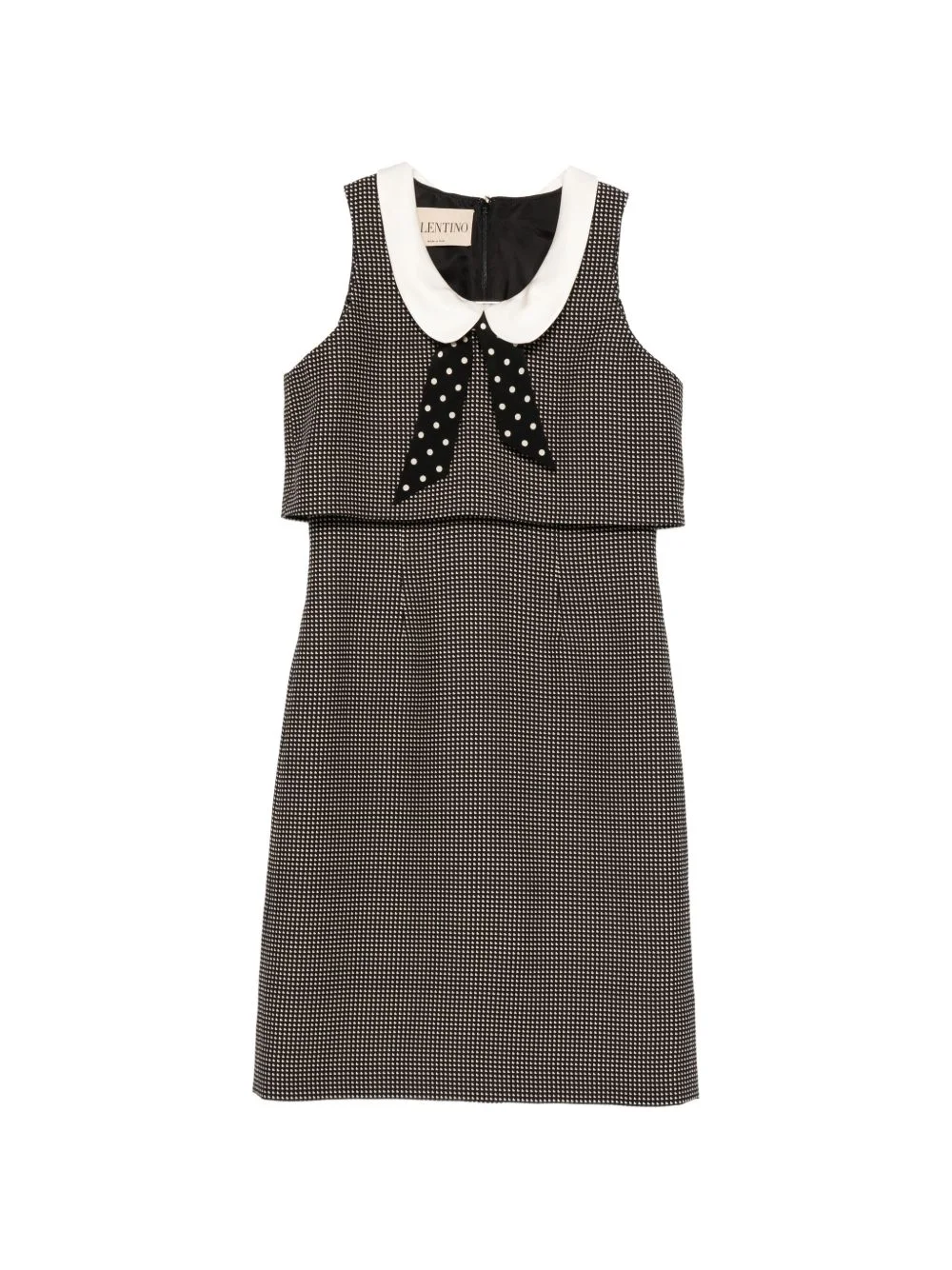 patterned collared dress Highlights - Black and beige - Dot pattern - Peter-pan collar - Bow detail - Sleeveless - Zip fastening Made in Italy Composition Wool 65%, Silk 35% Washing instructions Dry Clean Only