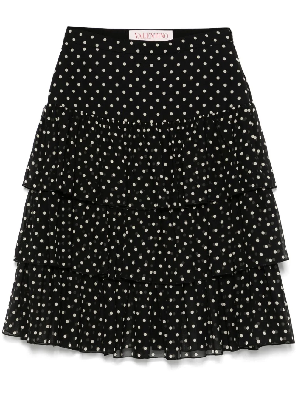 polka-dot mini skirt Highlights - Black - Concealed side hook and zip fastening - Full lining - Layered design - Gathered detailing Made In Italy Composition Outer: Silk 100% Lining: Viscose 91%, Elastane 9% SIZE & FIT Model measurements Height 5 ft 11 in(1.8 m) Bust/Chest 31.49 in(80 cm) Hips 36.61 in(93 cm) Waist 24.4 in(62 cm) FittingInformation This midi-length skirt is intended to be worn high on the waist Made from a lightweight fabric Washing instructions Dry Clean Only
