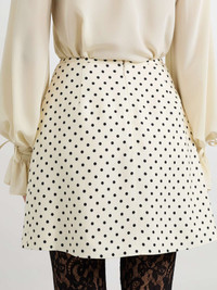 Aline polka-dot canvas mini skirt Cream