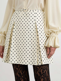 EDITORS'NOTES Valentino Garavani’s mini skirt captures the chic, retro-inspired feel of the label's Spring '25 collection, especially when teamed with the coordinating jacket. It's made from canvas printed with classic polka-dots and has inverted pleats to accentuate the A-line shape. SIZE & FIT Model measurements: - Fits true to size, take your normal size - Mid-thigh length, designed to be worn at the waist - Mid-weight, non-stretchy fabric - Model is 175cm/ 5'9" and is wearing an IT 40 - Bust: 85cm/ 33.5" - Waist: 62cm/ 24.5" - Hip: 91cm/ 36" DETAILS & CARE - Cream and black canvas - Concealed hook and zip fastening at back - 100% viscose