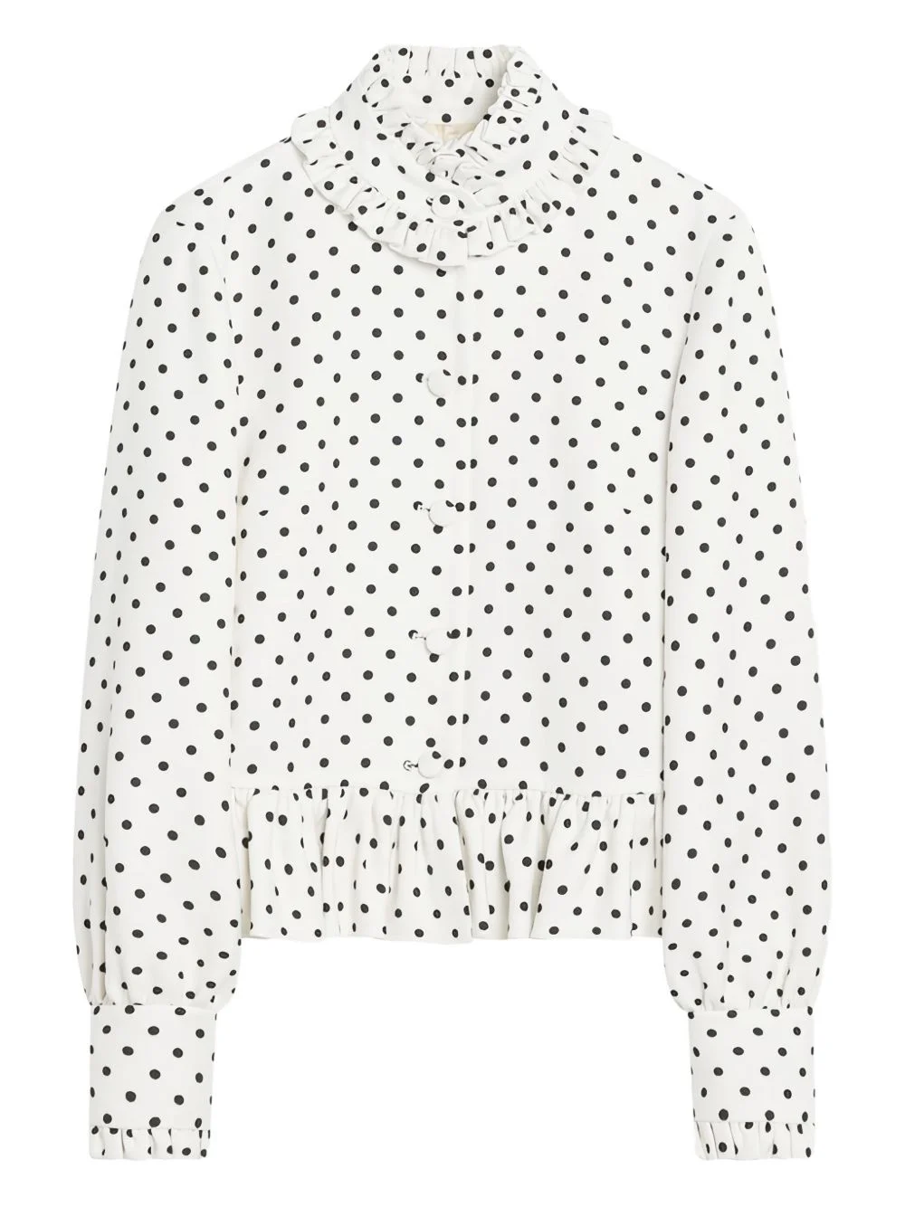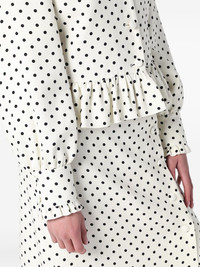 polka dot-print jacket Highlights - White - Front button fastening - Ruffle collar - Long sleeves - Buttoned cuffs Made in Italy Composition Viscose 100% Washing instructions Read Manufacturer Guidelines
