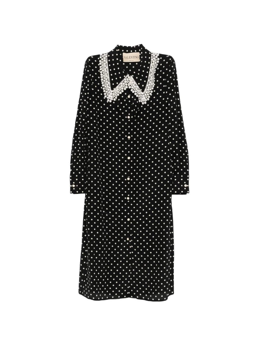 polka-dot midi shirt dress Highlights - Valentino ready to wear - Black - Polka-dot pattern - Lace-trimmed collar - Button fastening - Long sleeves - Midi length - This piece comes complete with a protective dust bag. Made in Italy Composition Silk 100%, Polyester 100% Washing instructions Dry Clean Only