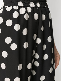 polka-dot straight-leg trousers You and high fashion, in these polka-dot trouses, we can't 'spot' the difference. In a pure silk construction, these polka dot trousers from Valentino Garavani are here to see you through the week in style. What are you waiting for? Highlights - Valentino ready to wear - Black - Silk - Bold polka dot print - High waist - Elasticated waistband - Straight leg - Ankle-length Made in Italy Composition Lining: Viscose 63%, Silk 37% Outer: Silk 100% SIZE & FIT Model measurements Height 5 ft 10 in(1.78 m) Bust/Chest 33.07 in(84 cm) Hips 36.61 in(93 cm) Waist 24.8 in(63 cm) Measurement FRONT RISE 11.02 in(28 cm) HIPS 40.94 in(104 cm) WAIST 28.34 in(72 cm) FittingInformation This piece fits true to size. We recommend you get your regular size Designed to be fitted at the waist, loose over the leg Made with a mid-weight non-stretch fabric