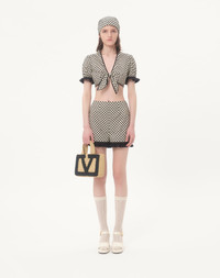 Poplin top in Plus de Pois print - Ruffle detail on the sleeves - Front bow fastening - Plus de Pois poplin (100% Cotton) - Unlined - Length 37.5 cm / 14.8 in. from the shoulders in an Italian size 40 - The model is 176 cm / 5'9" tall and wears an Italian size 40 - Made in Italy Product code: 7B3AEAZ09NB_0NI