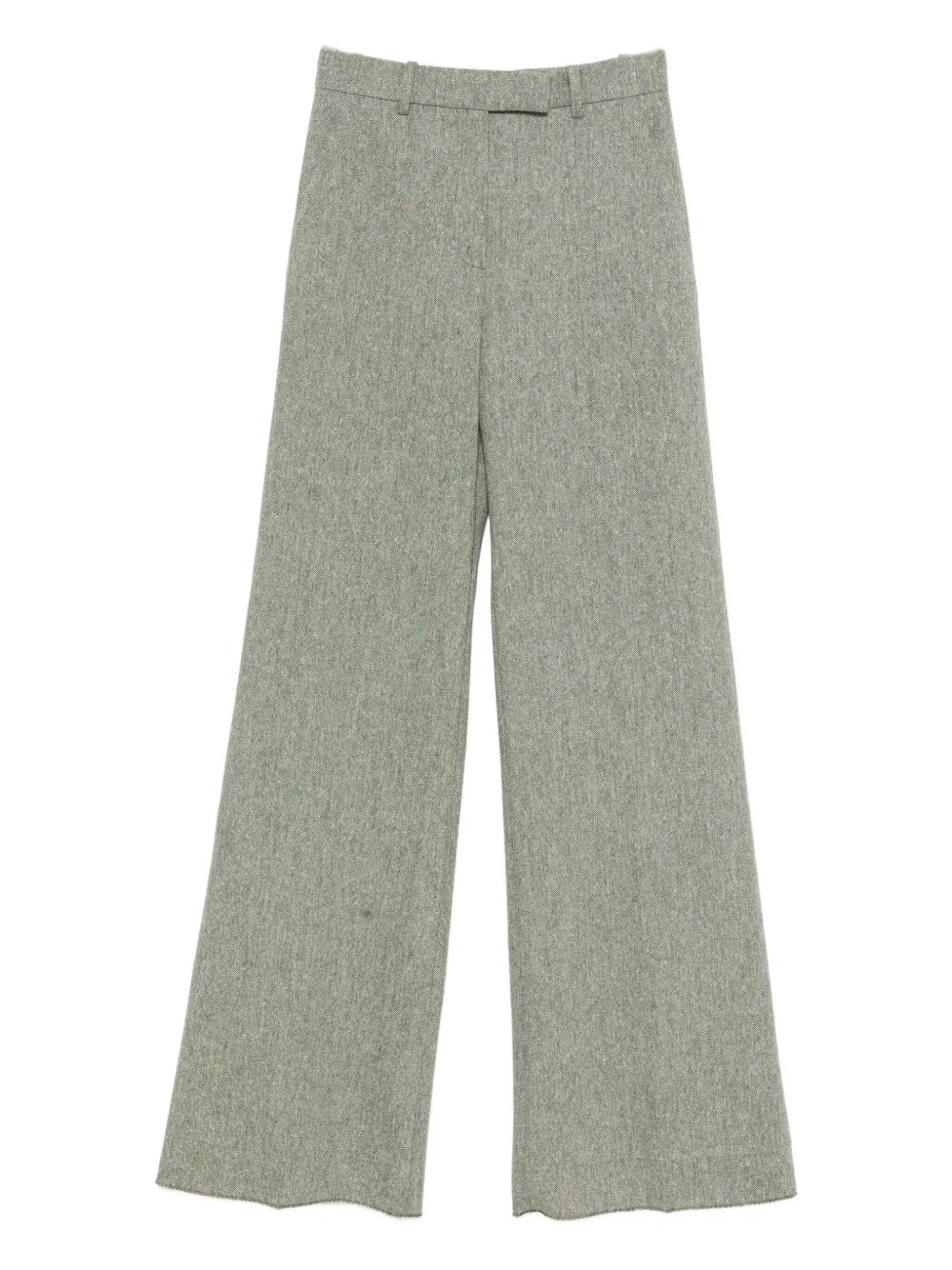 pressed crease trousers Highlights - Light green - Belt loops - Concealed fastening - Wide leg Made in Italy Composition Outer: Virgin Wool 83%, Polyamide 17% Lining: Cotton 100%, Cupro 100% SIZE & FIT Model measurements Height 5 ft 10 in(1.78 m) Bust/Chest 31.49 in(80 cm) Hips 37 in(94 cm) Waist 23.62 in(60 cm) Washing instructions Dry Clean Only