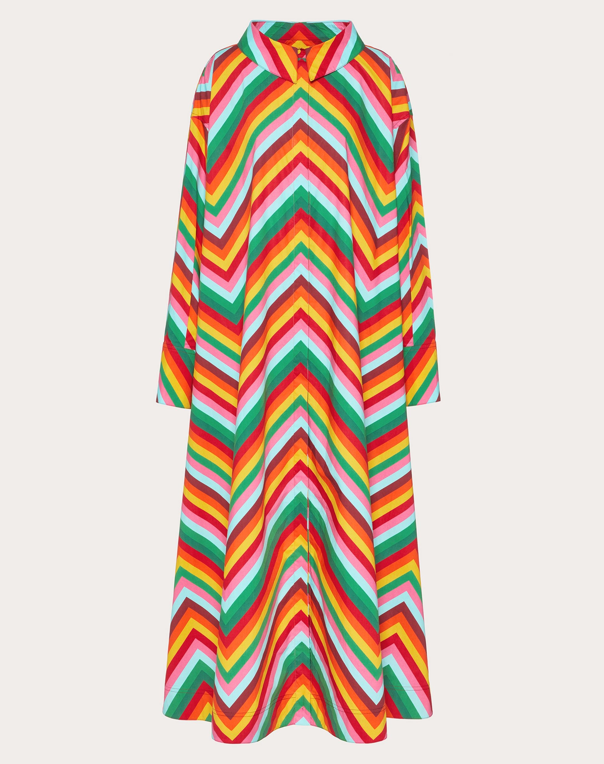 Dress in cotton with Valentino Archive 1973 Chevron print. - Valentino Archive 1973 Chevron print - Front fastening with small buttons - Cotton (100% Cotton) - Unlined - Length from shoulders: 140 cm / 55.1 in. for Italian size 40 - The model is 176 cm / 5’7” tall and is wearing an Italian size 40 - Made in Italy Product Code: XB3VAYA56UDM12