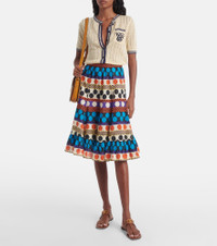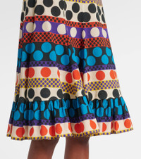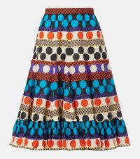 Crafted in Italy from pure cotton, this midi skirt from Valentino showcases a vibrant print all over. This design features zip and hook fastening for closure. Product Details - Material: 100% cotton - Care instructions: dry clean - Made in Italy - Designer color name: Multicolor/Righe/Pois - Item color: multicolor - Closure: zip and hook fastening - Item number: P01055252 Size & Fit - Fits large to size - we recommend trying one size smaller - Non-stretchy fabric - High-waisted - The model seen in the picture is 178cm-5'10" and wearing a size IT 38